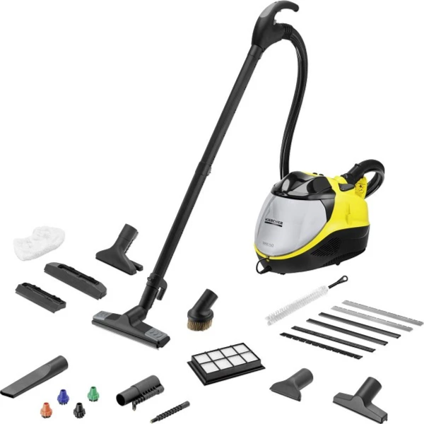 1 حوله مخصوص نازل دستی, ,, 2 لوله 0.5 متری, ,, 3 سری مختلف برای سطوح سخت و فرش, ,, برس گرد در 4 رنگ مختلف, ,, برس گرد کوچک, ,, برس نظافت دستگاه, ,, پیمانه آب (اختیاری), ,, سری در دو عرض مختلف برای نظافت شیشه، آینه و تمام سطوح کاشی کاری شده در حمام و آشپزخانه, ,, سری درزها و شیارها, ,, سری مبل، موکت و فرش کوچک و بزرگ, ,, کیف مخصوص لوازم جانبی, ,, مایع ضد کف برای جلوگیری از ورود کف به موتور مکنده