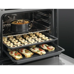 - نوع: فر توکار تمامبرقی - عرض: 60 سانتیمتر - رنگ: مشکی (Black Glass) - ظرفیت فر: 65 لیتر - کلاس مصرف انرژی: A+ - تعداد طبقات داخل فر: 2 تا 3 طبقه عملکرد و امکانات پخت- Multifunction Oven با المنت حلقهای (Ring Heating Element) برای پخت یکنواخت - Fast Heat Up (گرم شدن سریع فر) - پیشنهاد خودکار دما (Automatic Temperature Proposal) - کنترلها: ولومهای Retractable (توکار شونده) برای ظاهر لوکس و کنترل آسان - روشنایی داخلی: لامپ هالوژن با دید واضح داخل فر ایمنی- Soft Closing Door (درِ آرامبند) - Electronic Child Lock (قفل کودک الکترونیکی)