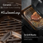 دستکش سیلیکونی, سینی پخت, کاردک, 3 قفسه توری فلزی, برس آغشته کردن سس یا روغن به مواد غذایی, چنگک, سینی پیتزا, سینی توری سوخاری, ظرف پخت سیلیکونی