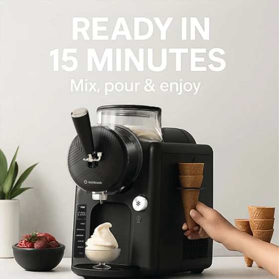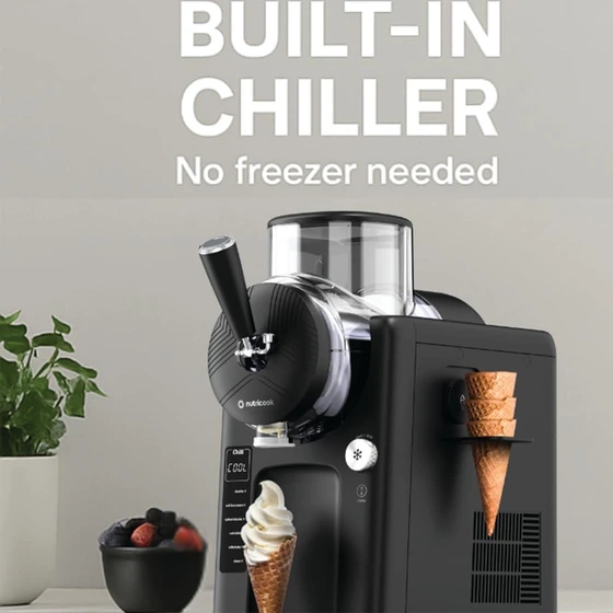 برخورداری از چیلر سردکننده داخلی بدون نیاز به فریزر, ,, برخورداری از مخزن مخلوط کننده دو لایه, ,, فرایند آماده سازی بستنی در 15 دقیقه
